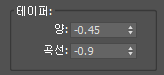 오브젝트 공간 수정자 섹션에서 테이퍼를 선택합니다.