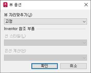 이 대화상자에서는 뷰 형상 앵커 방법과 Inventor 참조 부품 표시 방법을 지정합니다.