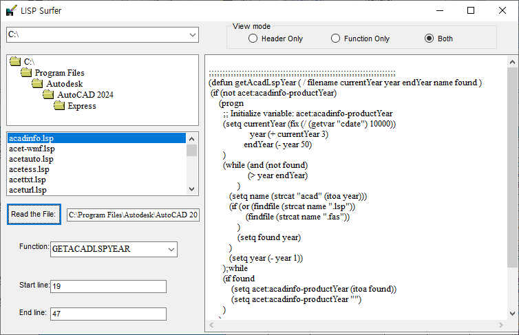 개별 기능별로 AutoLISP 파일의 컨텐츠를 표시합니다.