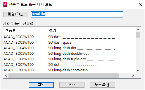 LINETYPE(명령) 찾기: 로드
