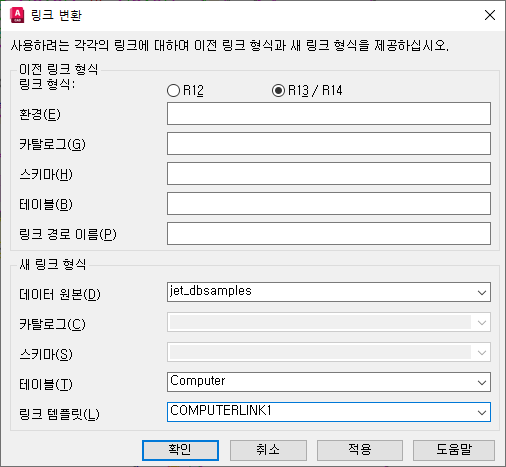 테이블에 변환하려는 링크의 릴리즈 13 또는 릴리즈 14 데이터베이스 테이블 이름을 입력합니다.