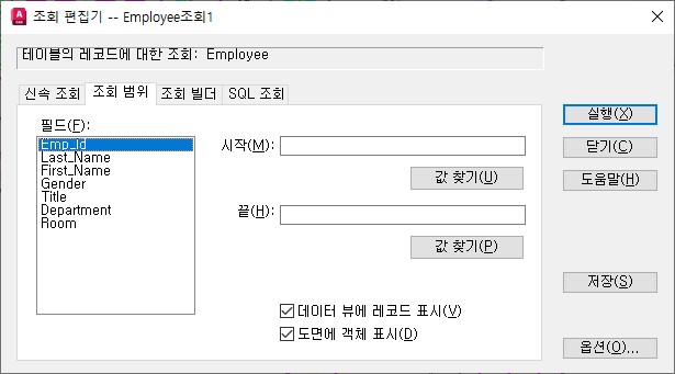 조회를 실행하지 않고 대화상자를 닫습니다.