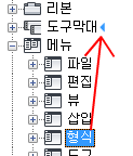 2. 도구막대를 작성할 메뉴를 도구막대 노드에 끌어놓습니다.