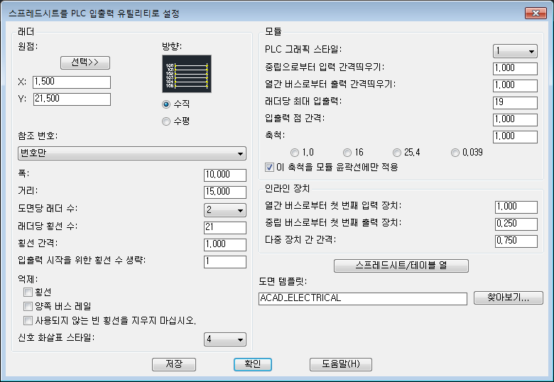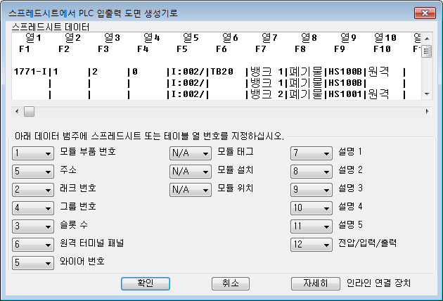 스프레드시트나 데이터베이스 형식에서 프로젝트의 PLC 입출력 요구사항은 입출력 구조도 도면을 자동으로 생성할 수 있습니다.