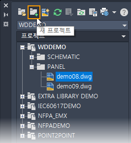 프로젝트 설명과 프로젝트 설정을 포함하는 프로젝트 파일(.WDP)은 지정된 폴더에서 작성됩니다. 새 프로젝트가 활성 프로젝트가 됩니다. 이제 도면을 프로젝트에 추가할 수 있습니다.