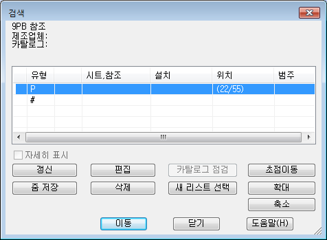 검색 작업으로 화면이 구조도 도면으로 이동하고 도식적인 구성요소를 줌합니다.