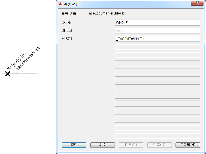 주: 표식기 블록에 정의된 속성 값은 스프레드시트에 정의된 모든 값을 재지정합니다.