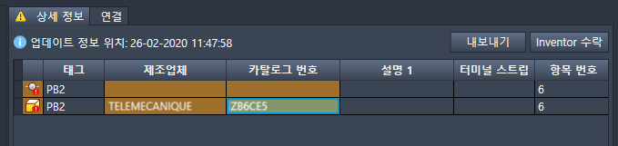 링크된 Inventor 구성요소와 일치시키려면 구성요소 값을 업데이트합니다.