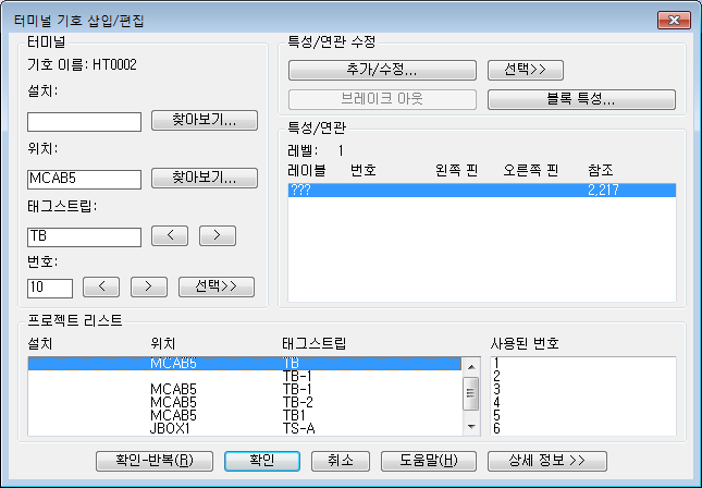 선택한 부품에 대한 제조업체 및 카탈로그 정보가 터미널 기호 삽입/편집 대화상자의 카탈로그 데이터 섹션에 표시됩니다.