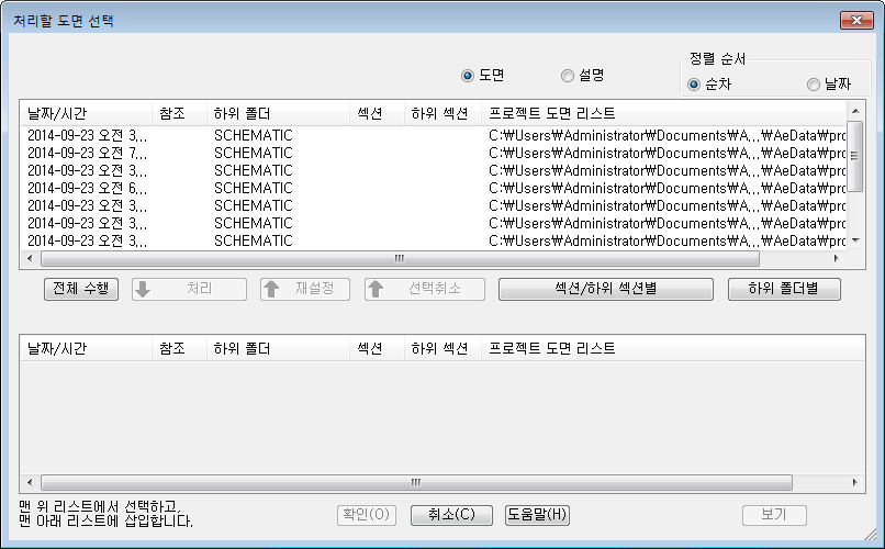 플롯 프로젝트를 선택하면 프로젝트에서 플롯할 도면을 선택할 수 있습니다.