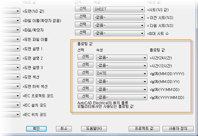 제목 블록 설정의 일부로 플롯 날짜 및 시간 형식을 특정 속성으로 매핑할 수 있습니다. 도면을 플롯할 때 이 속성이 자동으로 업데이트됩니다.