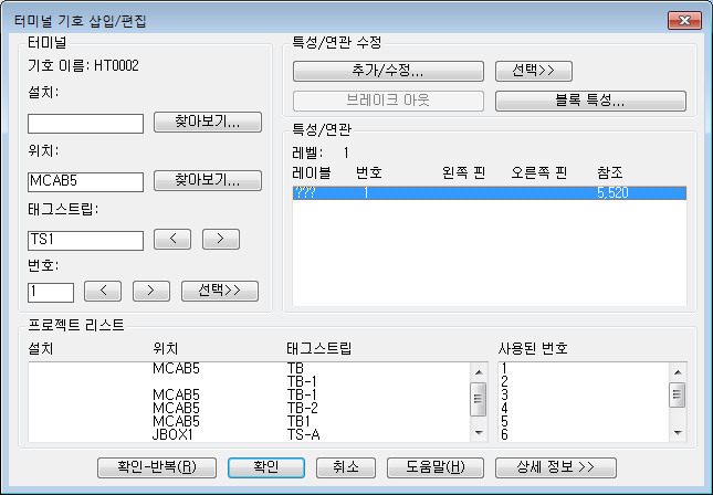 - 구성요소 삽입: JIC 구조도 기호 대화상자에서 터미널/커넥터를 클릭합니다.