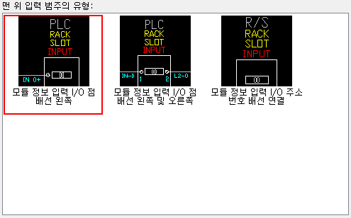 터미널 정보 선택 대화상자가 표시됩니다. 맨 위 기호에는 맨 위 입력, 맨 위 출력 및 맨 위 터미널의 세 가지 범주가 있습니다. 맨 위 입력 및 맨 위 출력은 주소를 지정할 수 있는 터미널이지만 맨 위 터미널 범주는 주소를 지정할 수 없는 터미널로 구성됩니다.