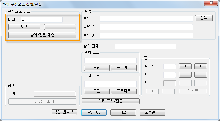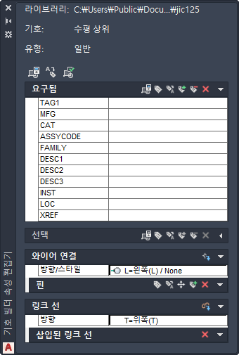 기호가 삽입되고 나면 설명, 카탈로그 정보 등으로 기호에 주석을 답니다.