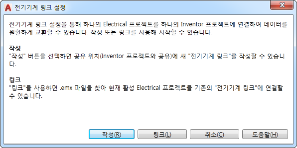 AutoCAD Electrical 도구 세트 프로젝트를 Inventor 프로젝트에 연결하는 전기기계 링크 파일을 작성합니다.