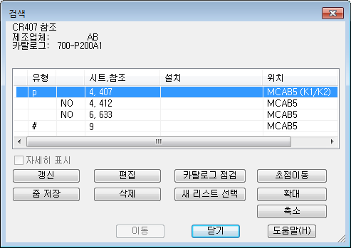 시트 6에 있는 CR407 복제가 검색되어 검색 대화상자 옆에 있는 도면에 표시됩니다.