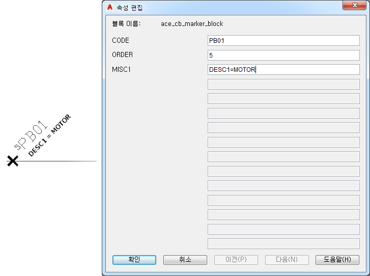CODE = MTR03 . 표식기 블록의 CODE 속성 값입니다.