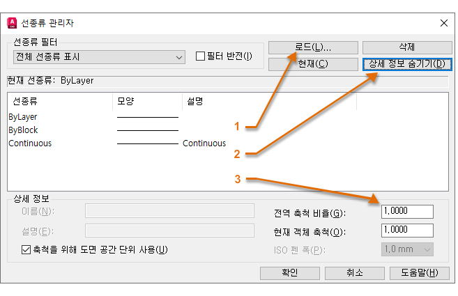 대시 및 기타 비연속 선종류는 특성 패널에서 지정됩니다. 먼저 선종류를 로드해야 선종류를 지정할 수 있습니다.