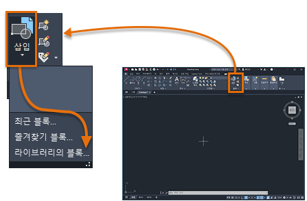 일반적으로 다음 소스 중 하나에서 현재 도면에 블록을 삽입합니다.