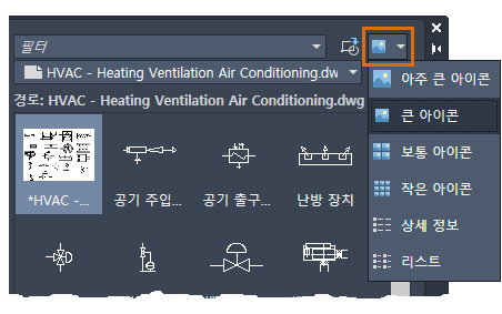 DesignCenter 폴더의 각 도면에는 관련된 블록 정의 세트가 포함되어 있습니다.