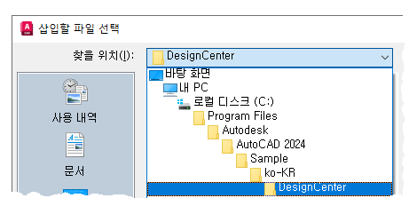 - 다양한 샘플 도면이 저장되어 있는 DesignCenter 폴더로 이동합니다.
