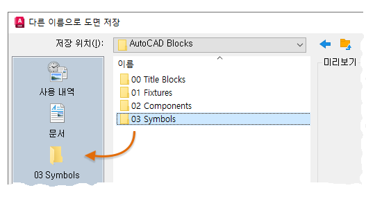주: 블록으로 삽입할 도면 파일로 직접 이동할 수도 있습니다.