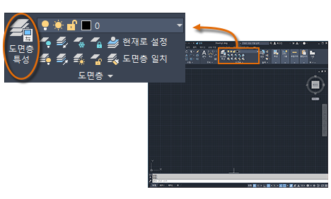 도면이 구성되는 방법을 보려면 LAYER 명령을 사용하여 도면층 특성 관리자를 엽니다. 명령 윈도우에 LAYER 또는 LA를 입력하거나 리본에서 도면층 특성 도구를 클릭할 수 있습니다.