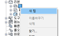 이름이 새 탭인 새 리본 탭이 탭 노드 맨 아래에 배치됩니다.