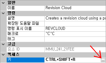 - 특성 창에서 키 상자를 클릭한 다음 […] 버튼을 클릭하여 바로 가기 키 대화상자를 엽니다.