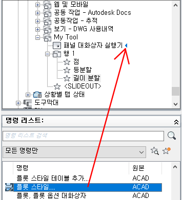 4. 명령 리스트에서 패널의 패널 대화상자 실행기로 명령을 끕니다.
