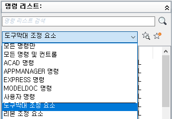 명령 리스트에 리본 조정 요소의 리스트만 표시됩니다.