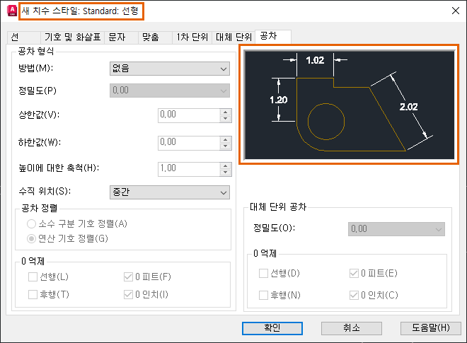 - 현재 치수 스타일을 전환할 때 손실되지 않음