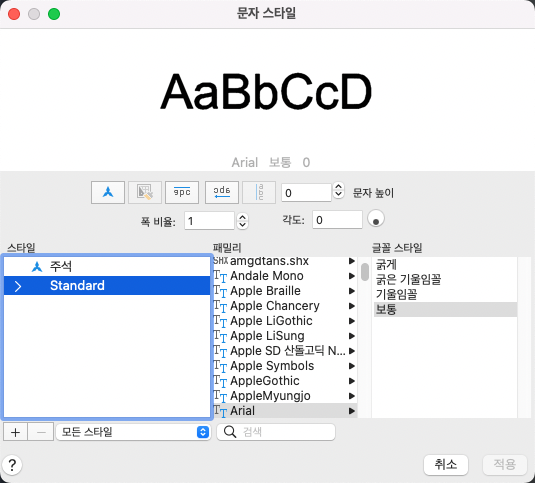 문자 스타일을 작성, 수정 또는 지정합니다.