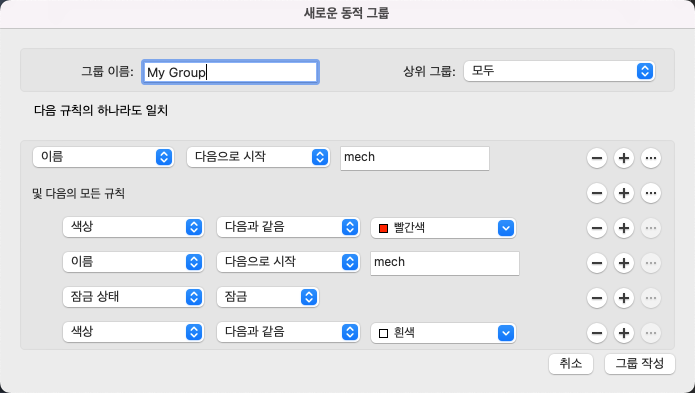 도면층 특성을 기준으로 도면층 그룹 작성