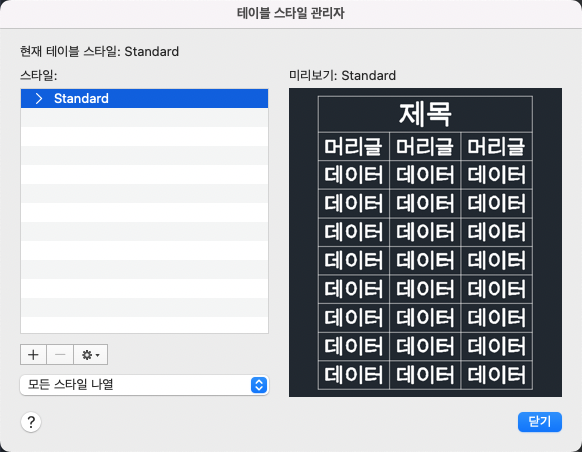 닫기를 클릭하여 테이블 스타일 관리자를 종료합니다.