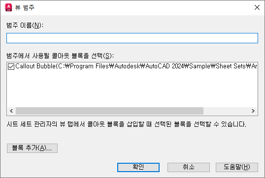현재 뷰 범주에 적절한 콜아웃 블록을 나열하는 방법을 제공합니다.