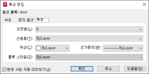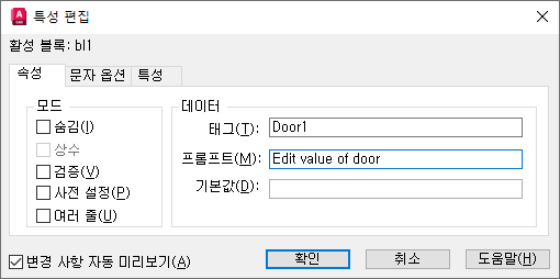 블록을 삽입할 때 속성에 지정된 기본값을 설정합니다.