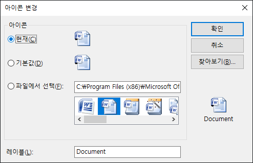 파일에서 아이콘을 지정합니다(유효한 유형은 EXE, DLL 및 ICO임).