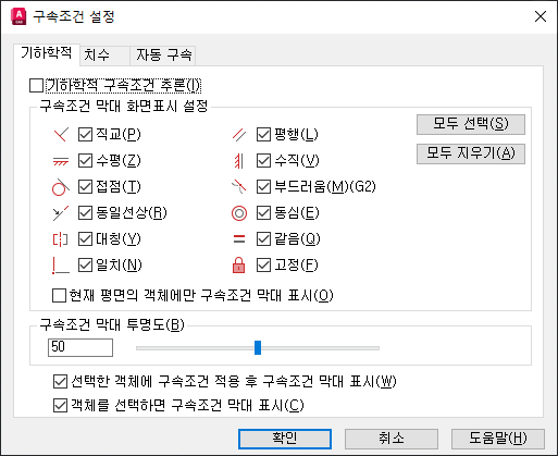 구속조건 막대의 구속조건 표시를 조정합니다.