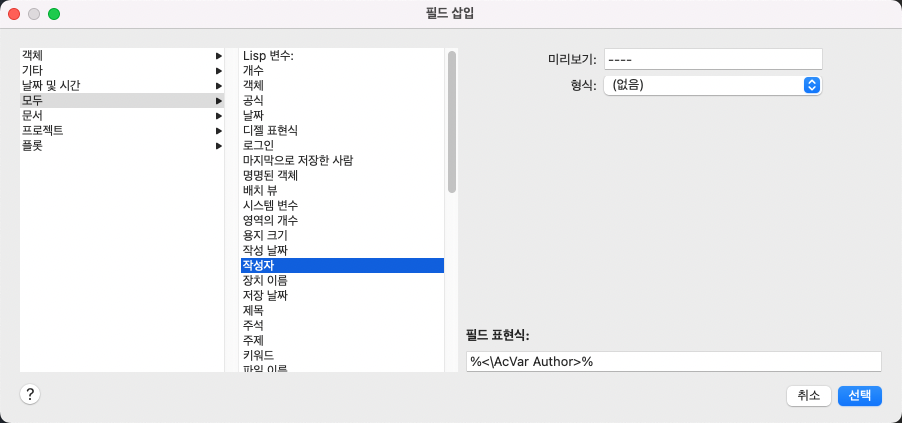 도면에 필드를 삽입합니다.