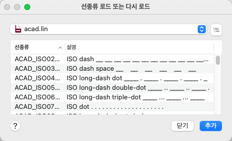 선종류 정의가 선종류 라이브러리(LIN) 파일에 있는 선종류를 로드합니다.