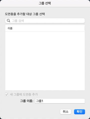 도면층을 추가할 그룹 선택