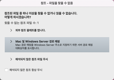 주 도면이 로컬 컴퓨터에 있고 참조가 서버에 있는 경우 서버 경로 매핑 대화상자를 사용하여 참조를 해석해야 합니다.