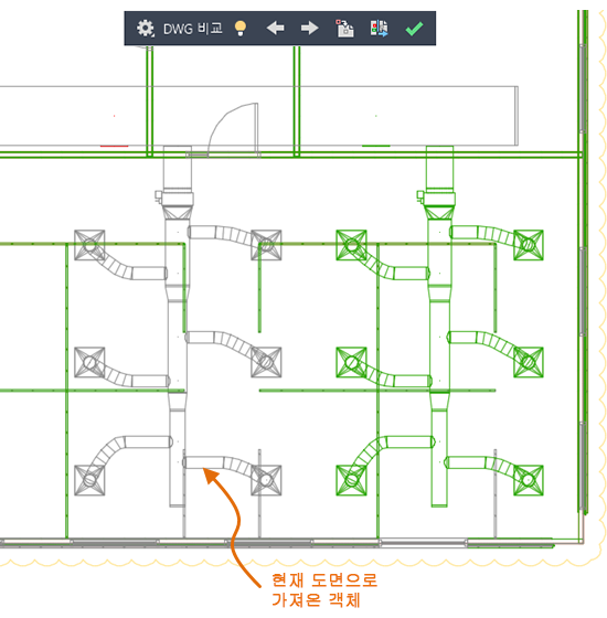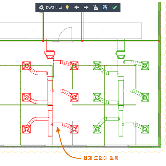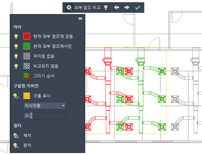 AutoCAD 2021 외부 참조 비교 향상 기능은 MEP 객체가 있는 AutoCAD MEP 도면에도 적용됩니다.