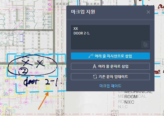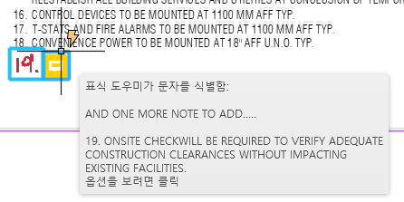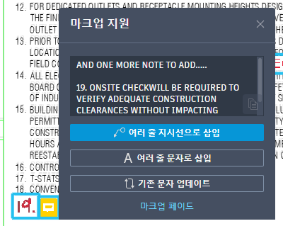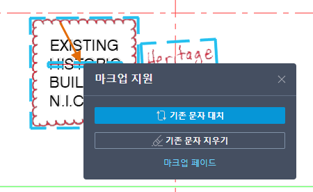 표식 도우미를 사용하면 가져오는 표식에 대해 작업을 수행할 수 있습니다. 표식 도우미는 문자, 취소선 문자, 지시선, 구름형 리비전, 지침 문자 및 PDF 주석을 식별할 수 있습니다. 구름형 리비전이나 여러 줄 문자 삽입과 같은 표식에 대한 작업을 수행할 경우, 객체는 추적이 아닌 도면에 추가됩니다.