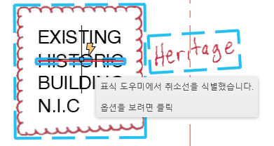 표식 도우미는 취소선이 그어진 문자 표식을 인식할 수 있습니다. 취소선 문자 표식에는 다른 옵션이 제공됩니다.