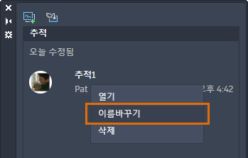 추적을 마우스 오른쪽 버튼으로 클릭하고 이름바꾸기를 클릭합니다.