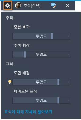 추적 뒤. 활성 추적이 뷰 모드이므로 추적이 계속 표시되는 동안 상위 도면을 편집할 수 있습니다.
