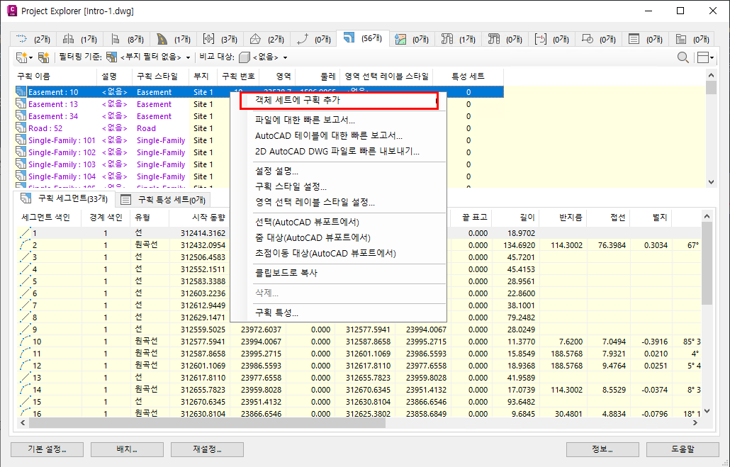 보고서 또는 스프레드시트를 생성하는 새 객체 세트를 작성하려면 Project Explorer 윈도우의 객체 리스트 창에서 하나 이상의 객체를 선택하고 마우스 오른쪽 버튼 클릭 메뉴에서 객체 세트에 추가
