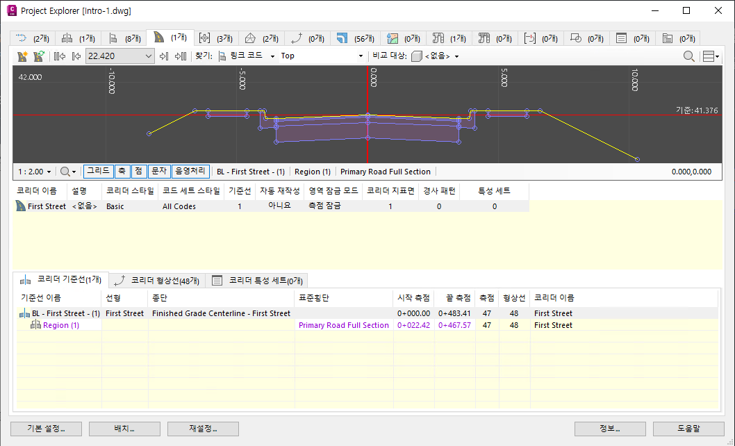 기본 설정에 따라 데이터 열의 배치 및 보고서 생성과 관련이 없는 Project Explorer 사용자 인터페이스 부분이 결정됩니다. 예를 들어 Project Explorer 윈도우에서 종단 및 횡단 뷰에 대한 색상표 및 기본 축척 설정, 사용자 인터페이스에 대한 글꼴 설정, 각 개별 객체 범주 탭의 표시 여부 및 창 배치를 결정합니다.